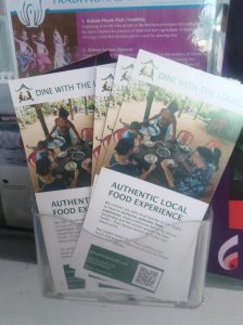 We are now starting to distribute flyers, in Siem Reap and in Phnom Penh. To do this we are thankful for those shops, restaurants, bars and institutions who allow us to promote DINE WITH THE LOCALS. Please pay a visit to those places when in town. More coming soon.